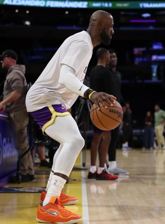 詹姆斯晒出了一系列的赛场照,主要是赛前热身时的照片,另外还有一张和儿子布朗尼的合照。
