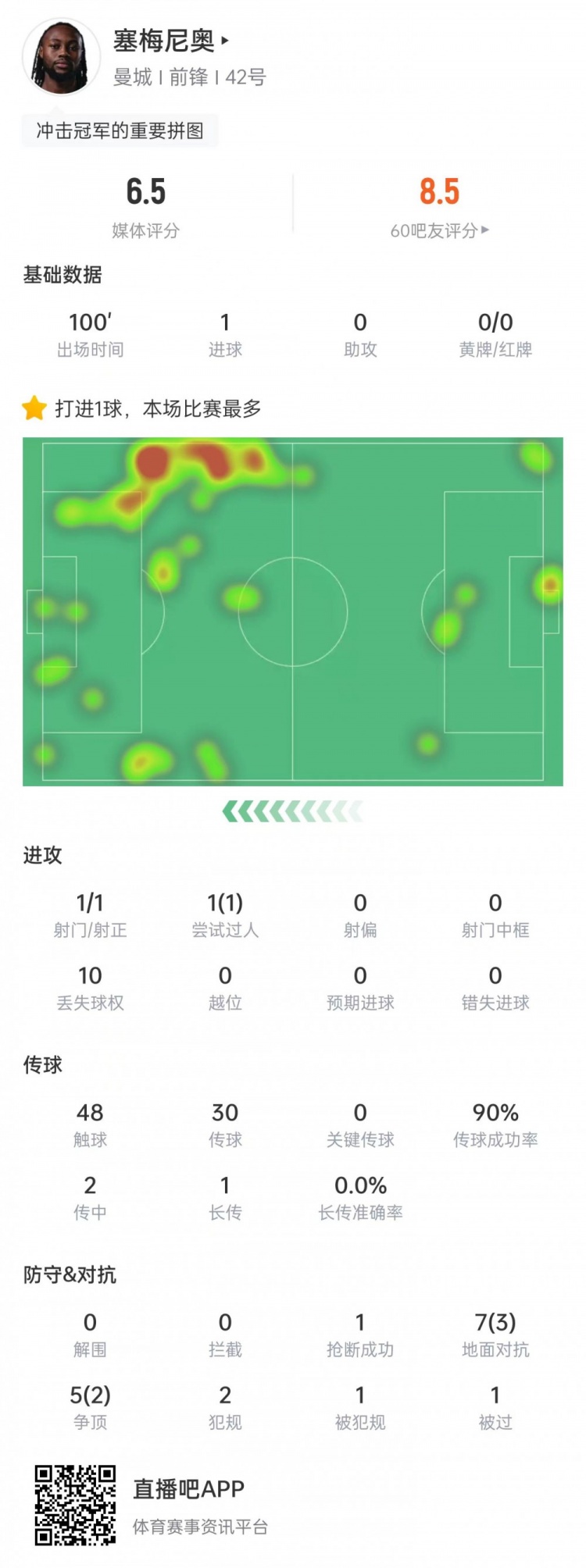 od体育官网入口-连场破门!塞梅尼奥当选对阵纽卡一役曼城队内最佳球员