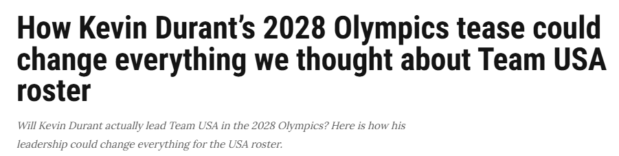 杜兰特也并未宣布退出,他在接受ESPN记者古德威尔采访时,明确表态自己愿意出战2028年洛杉矶奥运。美媒ClutchPoints随后对2028年美国男篮的名单展开分析——